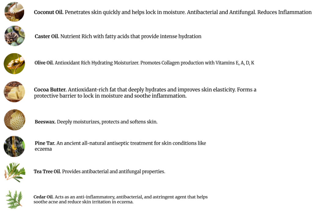 Pine Tar is a traditional remedy that has been used for centuries to relieve itchy, inflamed and irritated skin. This recipe combines the beneficial properties of Pine Tar along with Tea Tree and Cedar essential oils to help soothe and combat eczema.